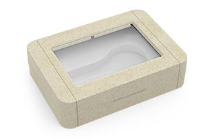 Produzida a partir de um material eco-híbrido contendo 40% de bambu fibroso de forma a reduzir a utilização de plástico. Esta caixa dispõe de uma bonita janela transparente que permite visualizar o produto promocional no seu interior. A tampa fica fechada de forma segura graças a dois pequenos ímanes.